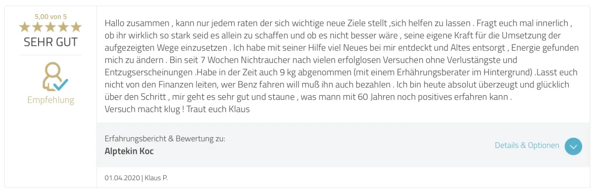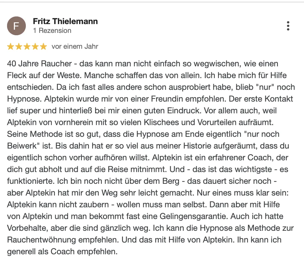 "Wusste schon vor der Hypnose -ich bin Nichtraucher!"